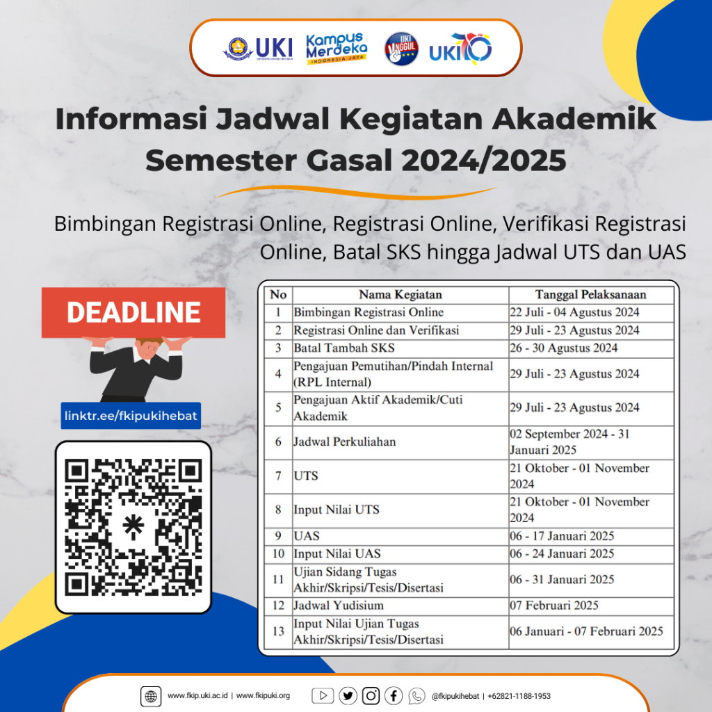 Informasi Jadwal Kegiatan Akademik Semester Gasal 2024/2025 yang akan dilaksanakan sesuai dengan jadwal yang telah ditentukan sehingga tidak mengganggu jalannya perkuliahan dan pelaporan PDDikti.